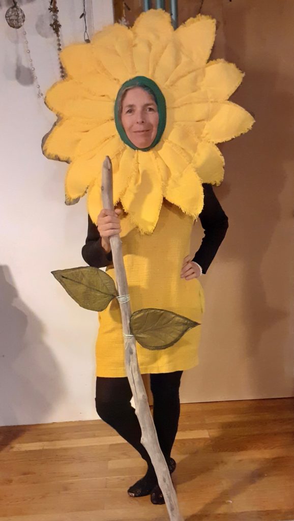 Anne en pleine action avec un de ses animaux préféré, un crocodile fait maison tout comme le costume.